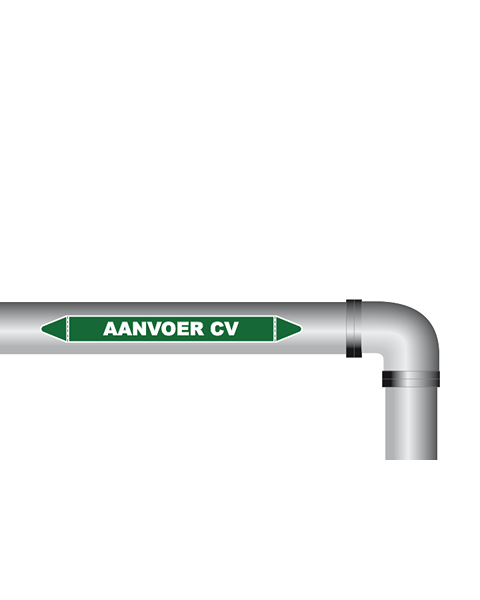 Leidingmarkering voor aanvoer van CV water. Gebruik deze sticker om aan te geven welke leiding als aanvoer van CV water gemarkeerd moet worden. Te gebruiken in ruimtes met waterleidingen, bijvoorbeeld in huizen, bedrijfspanden en fabrieken. De sticker is geschikt voor zowel binnen- als buitengebruik. Kies bij buitengebruik de optie “beschermfolie” voor extra bescherming tegen UV straling en water (en dus een langere levensduur).