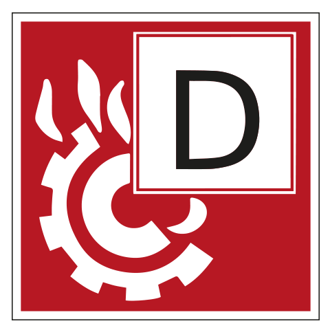 Pictogram brandklasse D, op vinyl basis binnen- en buiten geschikt. Deze sticker is UV bestendig u kunt kiezen voor een extra beschermlaag die de levensduur maximaliseert. Deze en alle andere veiligheidsstickers vallen onder de ISO7010.