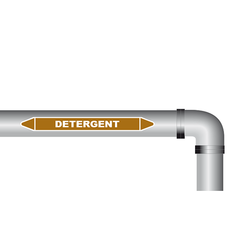 Leidingmarkering voor detergent. Gebruik deze sticker om aan te geven welke leiding als detergent gemarkeerd moet worden. Te gebruiken in ruimtes met ontvlambare vloeistoffen leidingen, bijvoorbeeld in de schoonmaakmiddel industrie. De sticker is geschikt voor zowel binnen- als buitengebruik. Kies bij buitengebruik de optie “beschermfolie” voor extra bescherming tegen UV straling en water (en dus een langere levensduur).