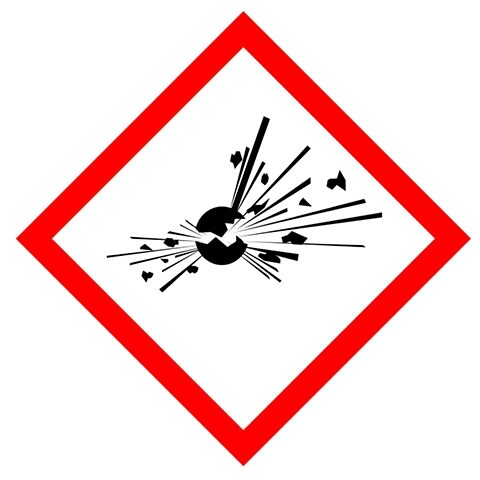 GHS01 explosief. Gebruik deze sticker om aan te geven dat de inhoud explosief is. Te gebruiken bij producten waar ontploffingsgevaar is. De sticker is geschikt voor zowel binnen- als buitengebruik. Kies bij buitengebruik de optie “beschermfolie” voor extra bescherming tegen UV straling en water (en dus een langere levensduur).