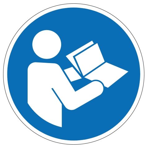 M002 gebruiksaanwijzing. Gebruik deze sticker om aan te geven dat je de gebruiksaanwijzing moet lezen voordat je aan het werk mag. (NEN ISO 7010). De sticker is geschikt voor zowel binnen- als buitengebruik. Kies bij buitengebruik de optie “beschermfolie” voor extra bescherming tegen UV straling en water (en dus een langere levensduur).