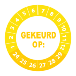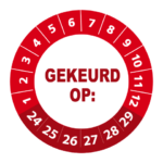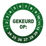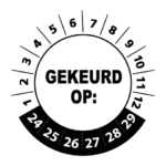 Bestel hier uw ‘gekeurd op 2024’ stickers op makkelijk hanteerbare rollen. Deze keuringsstickers hebben een diameter van 3 cm en worden geleverd met een UV beschermlaag. Ze zijn daarom ook geschikt voor outdoor gebruik en kunnen prima tegen een stootje. Heeft u speciale wensen? Bel of mail dan gerust voor een offerte op maat!