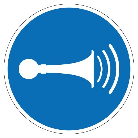 M029 geluidssignaal. Gebruik deze sticker om aan te geven dat het verplicht is om een geluidssignaal af te geven. (NEN ISO 7010). De sticker is geschikt voor zowel binnen- als buitengebruik. Kies bij buitengebruik de optie “beschermfolie” voor extra bescherming tegen UV straling en water (en dus een langere levensduur).