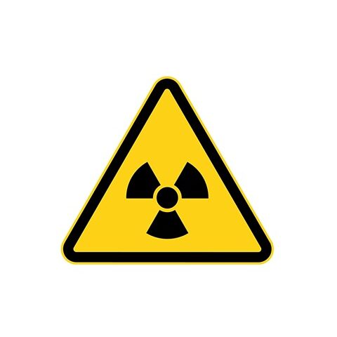 Ioniserende straling pictogram (W003) sticker. Plaats deze pictogram in situaties waar mensen direct of indirect in contact kunnen komen met straling die ioniserend kan zijn. De sticker is UV bestendig en u kunt indien gewenst in het keuze menu een krasbestendige beschermlaag toevoegen.