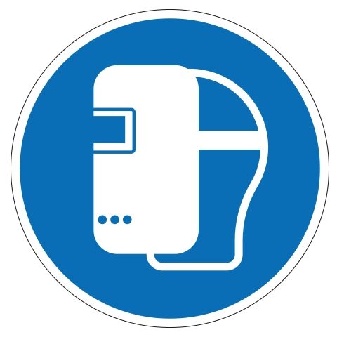M019 lasscherm. Gebruik deze sticker om aan te geven dat het gebruiken van een lasscherm verplicht is. (NEN ISO 7010). De sticker is geschikt voor zowel binnen- als buitengebruik. Kies bij buitengebruik de optie “beschermfolie” voor extra bescherming tegen UV straling en water (en dus een langere levensduur).
