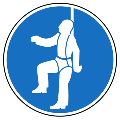 M018 valbescherming. Gebruik deze sticker om aan te geven dat het dragen van valbescherming verplicht is. (NEN ISO 7010). De sticker is geschikt voor zowel binnen- als buitengebruik. Kies bij buitengebruik de optie “beschermfolie” voor extra bescherming tegen UV straling en water (en dus een langere levensduur).