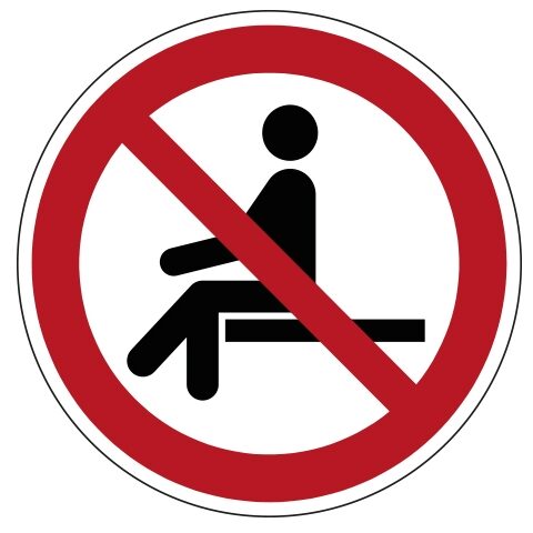P018 verboden te zitten. Gebruik deze sticker om aan te geven dat het verboden is om te zitten. Bijvoorbeeld op trappen of machines. De sticker is geschikt voor zowel binnen- als buitengebruik. Kies bij buitengebruik de optie “beschermfolie” voor extra bescherming tegen UV straling en water (en dus een langere levensduur).
