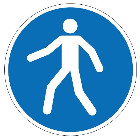 M024 voetpad gebruiken. Gebruik deze sticker om aan te geven het verplicht is om gebruik te maken van het voetpad. (NEN ISO 7010). De sticker is geschikt voor zowel binnen- als buitengebruik. Kies bij buitengebruik de optie “beschermfolie” voor extra bescherming tegen UV straling en water (en dus een langere levensduur).